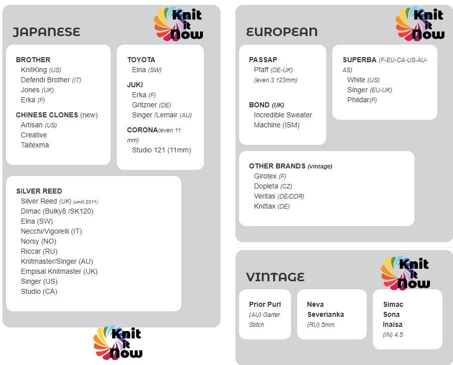 In the heyday of knitting machines (1960-1990), 2 Japanese manufacturers produced the majority of the models designed for domestic knitting. They marketed the machines worldwide under different brand names.